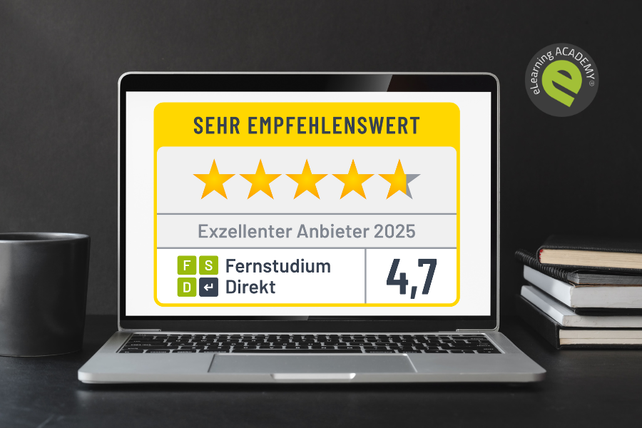 Wichtig: All unsere Lehrgänge, so auch unsere MA (CE) Programme, sind dreifach qualitätsgesichert – sie durchlaufen den Akkreditierungsprozess der Hochschule Burgenland, zusätzlich eine ISO-zertifizierte Qualitätssicherung durch die eLearning Academy und nicht zuletzt das ehrliche Feedback unserer Studierenden und Alumni, die uns auch 2025 wieder als Exzellenten Anbieter auf der unabhängigen Plattform fernstudium-direkt.de ausgezeichnet haben.
